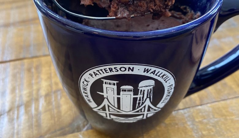 Note: Please use a fairly large mug. It needs to be big enough so that the cake can rise without creating a “volcano lava” pour all over your microwave.