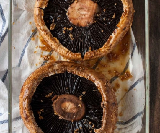 Marinated and then baked, these portobello mushrooms can be a vegetarian main dish, or a wonderful accompaniment to a meal.