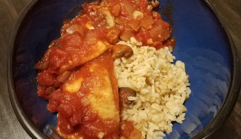 This fish recipe is a simple secret. Full of tomatoes and mushrooms! It’s a great dinner when you’re in a hurry. It all goes into one pan and simmers away for loads of flavor. Serve over white or brown rice for a hearty dinner.