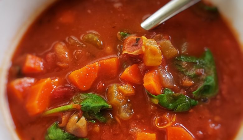 This robust soup comes together quickly. Perfect for a cold night when you just want something fast. Layers of flavors, but a very simple ingredient list. You might have all the items in your pantry right now.