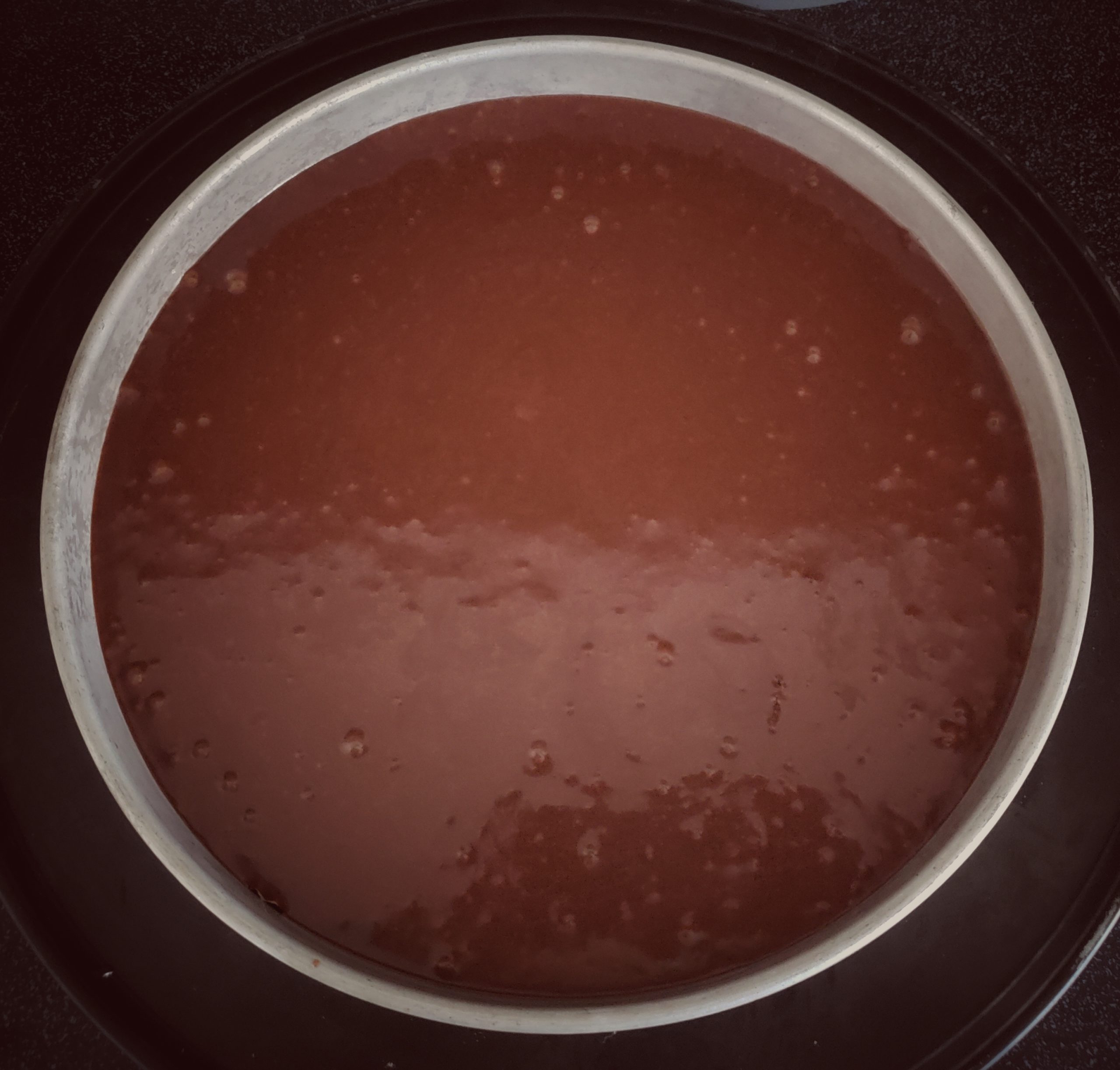 Line a round cake pan (8x2 or 9x2) or a square bakeware, with parchment paper and spray with oil.