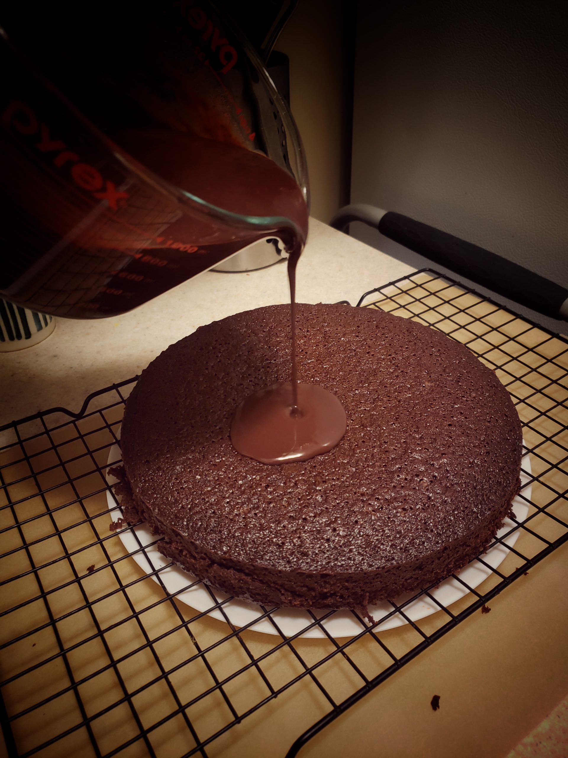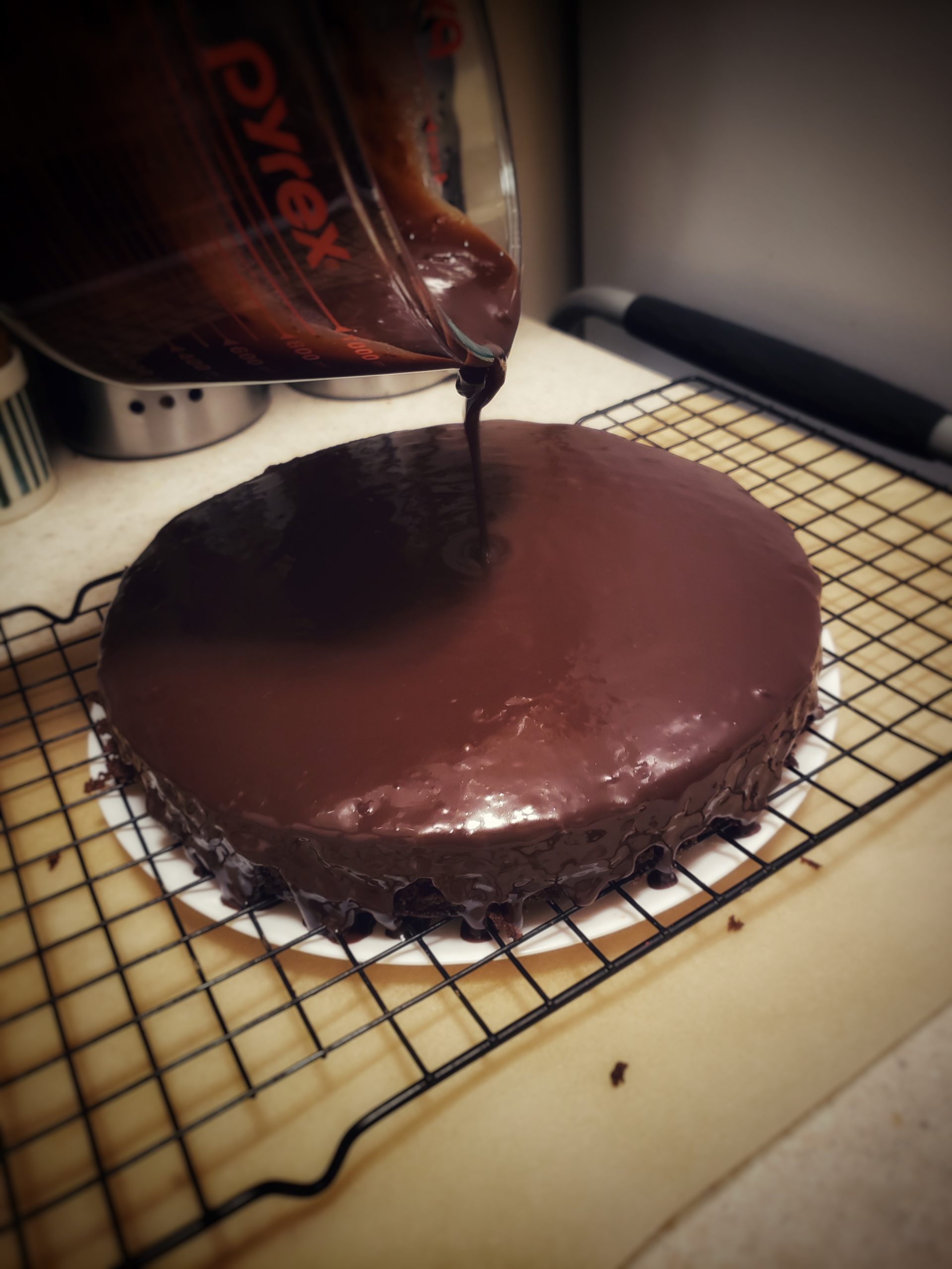 4If using the ganache, place cake on a wire rack with a plate or foil underneath.