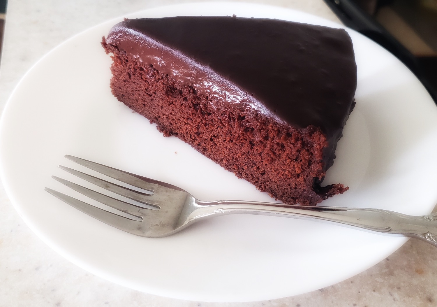 The cake is great covered in powdered sugar or coated in a chocolate ganache.
