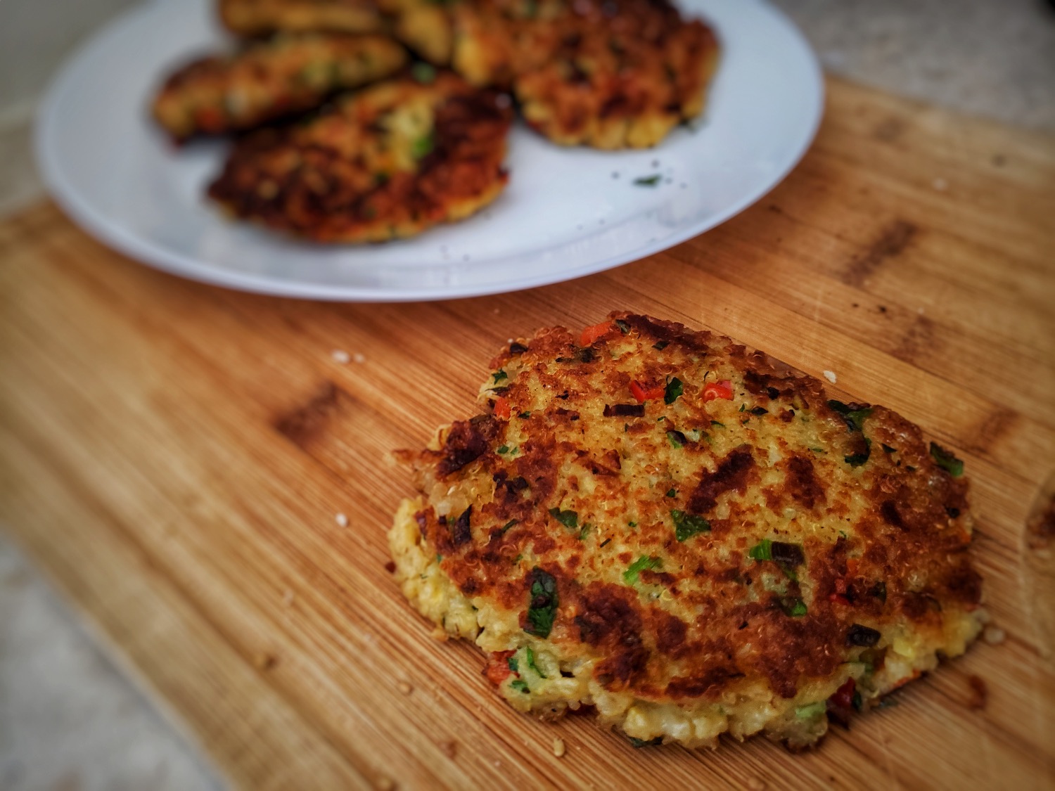 Made with a mixture of cooked quinoa and herbs, these cakes can be made bite-size as an appetizer or larger for a sandwich. Tastes great with a chipotle mayo or a tangy blue cheese dressing.