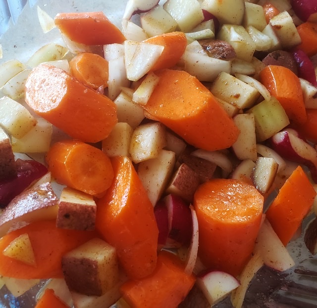 3 cups Potatoes, cut in 1 inch pieces (Note: turnips, parsnips or other root vegetables can also be used)