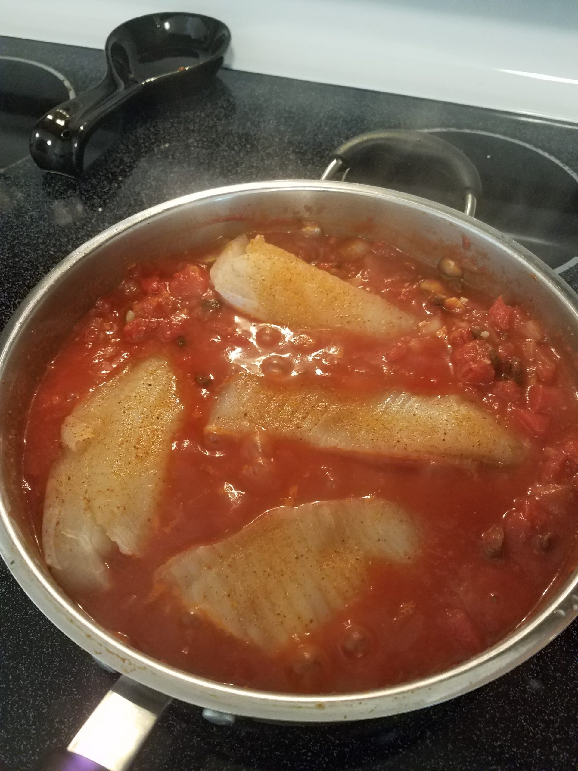This fish recipe is a simple secret. Full of tomatoes and mushrooms! It's a great dinner when you're in a hurry. It all goes into one pan and simmers away for loads of flavor. Serve over white or brown rice for a hearty dinner.