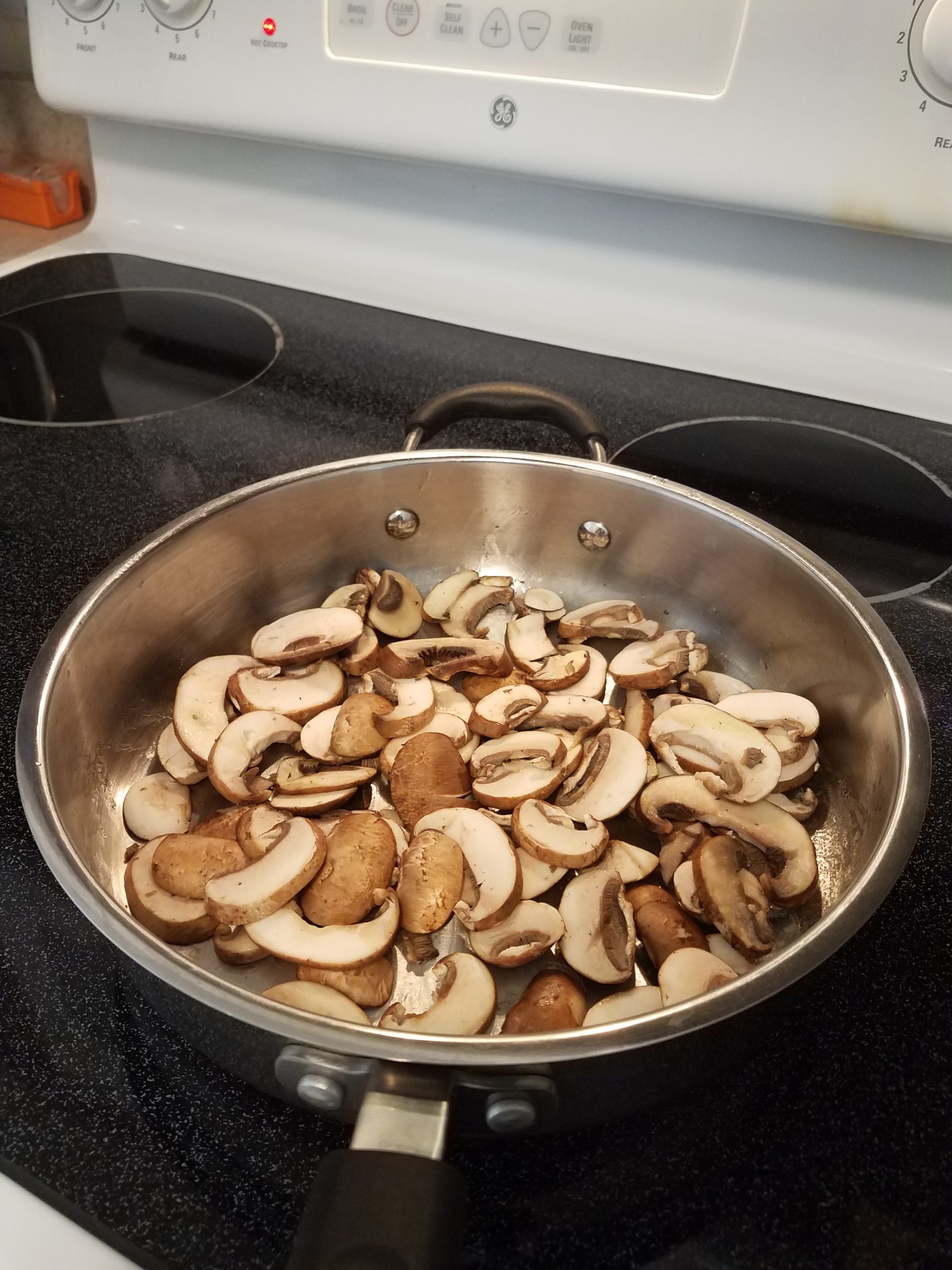 2In a large saucepan (about 3 inches deep) over medium heat, melt butter and saute mushrooms. Season them with 1/2 teaspoon of salt.