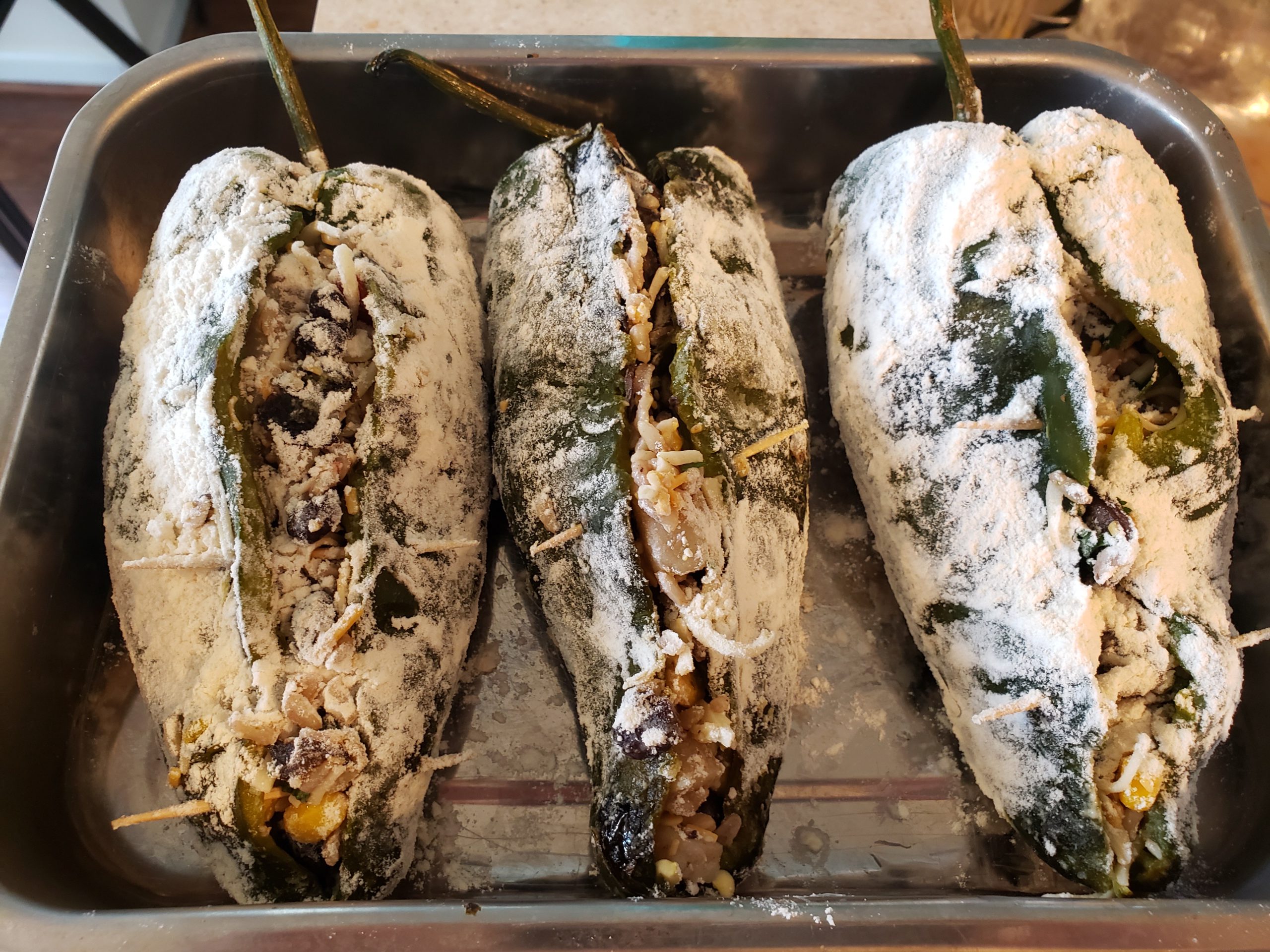 Stuffing the Poblanos;