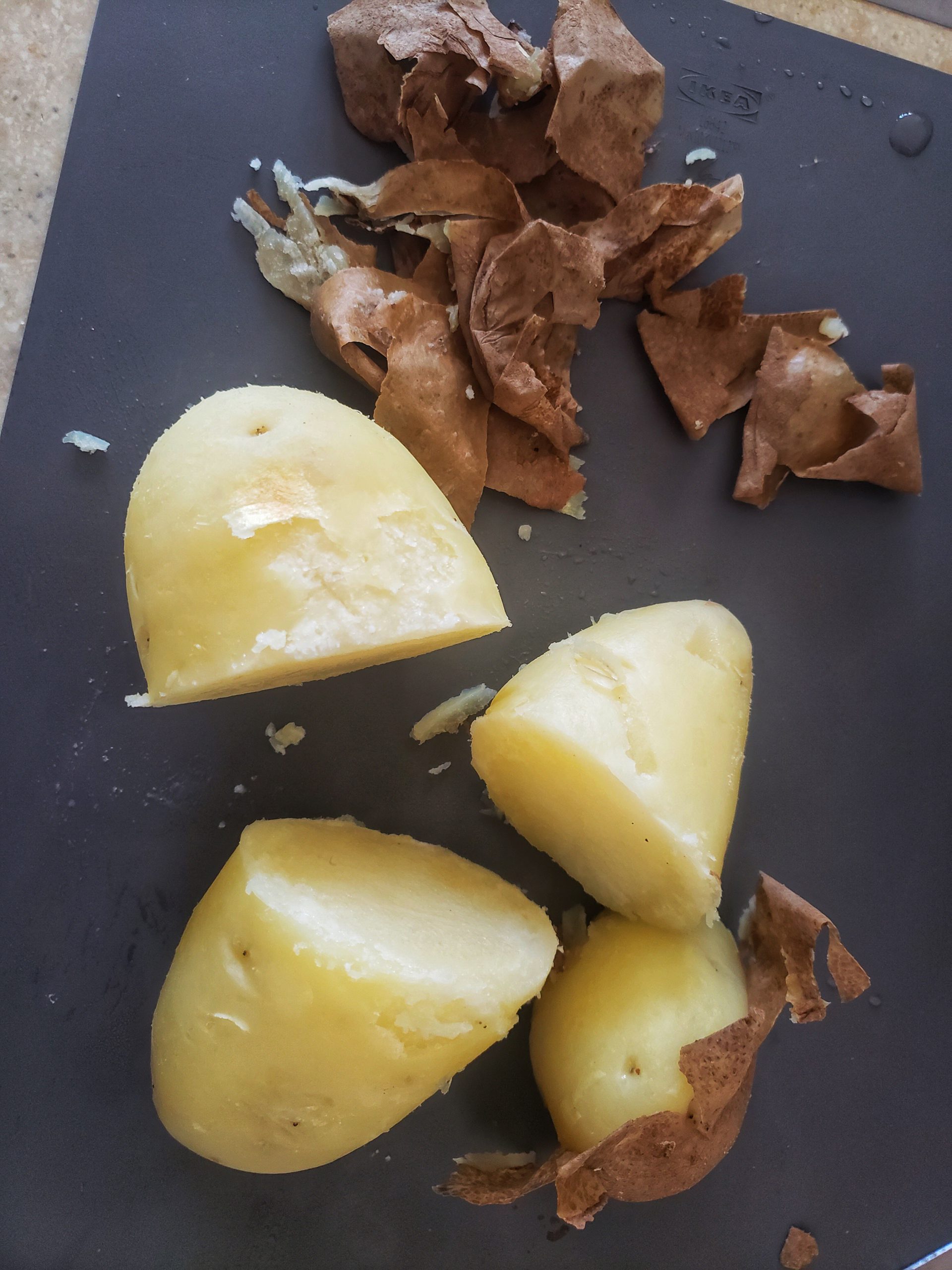 Peel potato and dice.